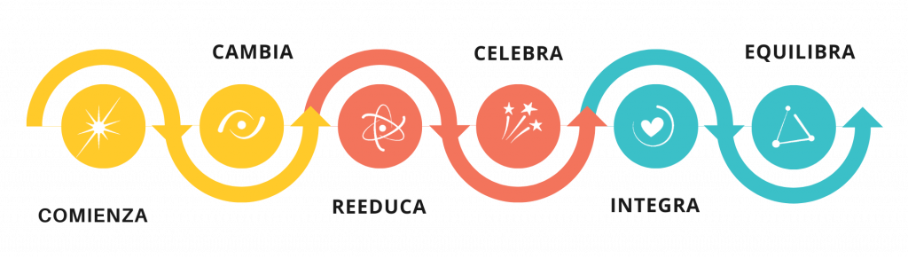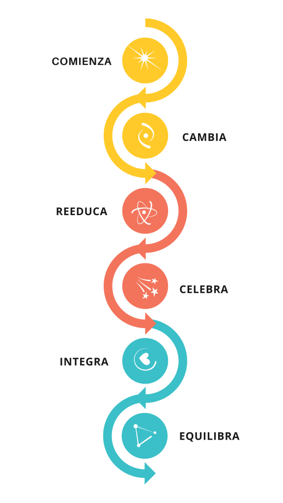 El programa Kiitos está diseñado para acompañarte paso a paso a través de seis fases progresivas: comenzar, cambiar, reeducar, equilibrar, integrar y celebrar. Cada etapa te ayuda a ajustar hábitos, consolidar aprendizajes y disfrutar de una transformación real y duradera.